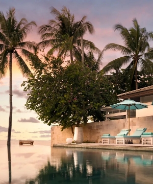 位在面向泰國灣的山坡上,背後是熱帶雨林前面是一大片廣闊的海洋,隱私與豪華兼具的完美度假地點。豪華私人別墅,設有游泳池、露台,可以欣賞天海一線的迷人景緻。令人難以置信的美食選擇,滿足最苛刻的食慾。SPA水療中心、設備齊全的健身中、心無邊泳池,優雅和精緻與熱情的泰式經典待客之道完美融合,打造出最美好的熱帶島嶼度假勝地。